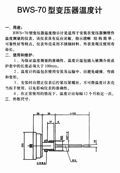 BWS-70變壓器溫度計(jì)